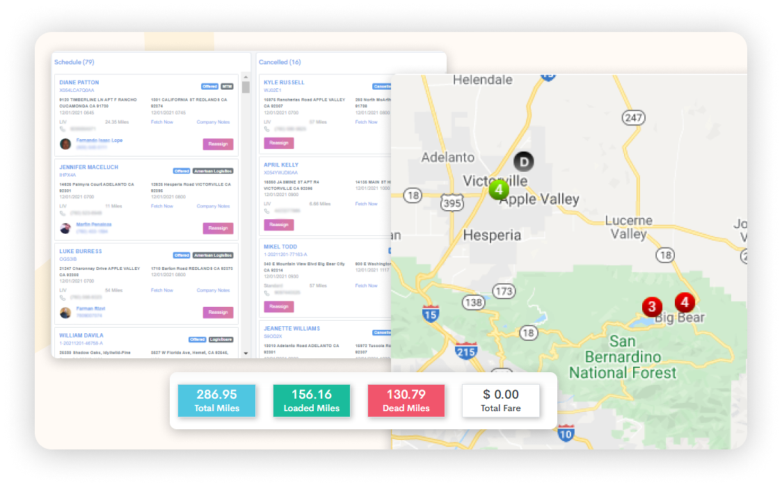 Reduce driver miscommunication, wasted time, and passenger dissatisfaction. The NEMT Software improves dispatchers' visibility and enables them to match trips with drivers in real time.