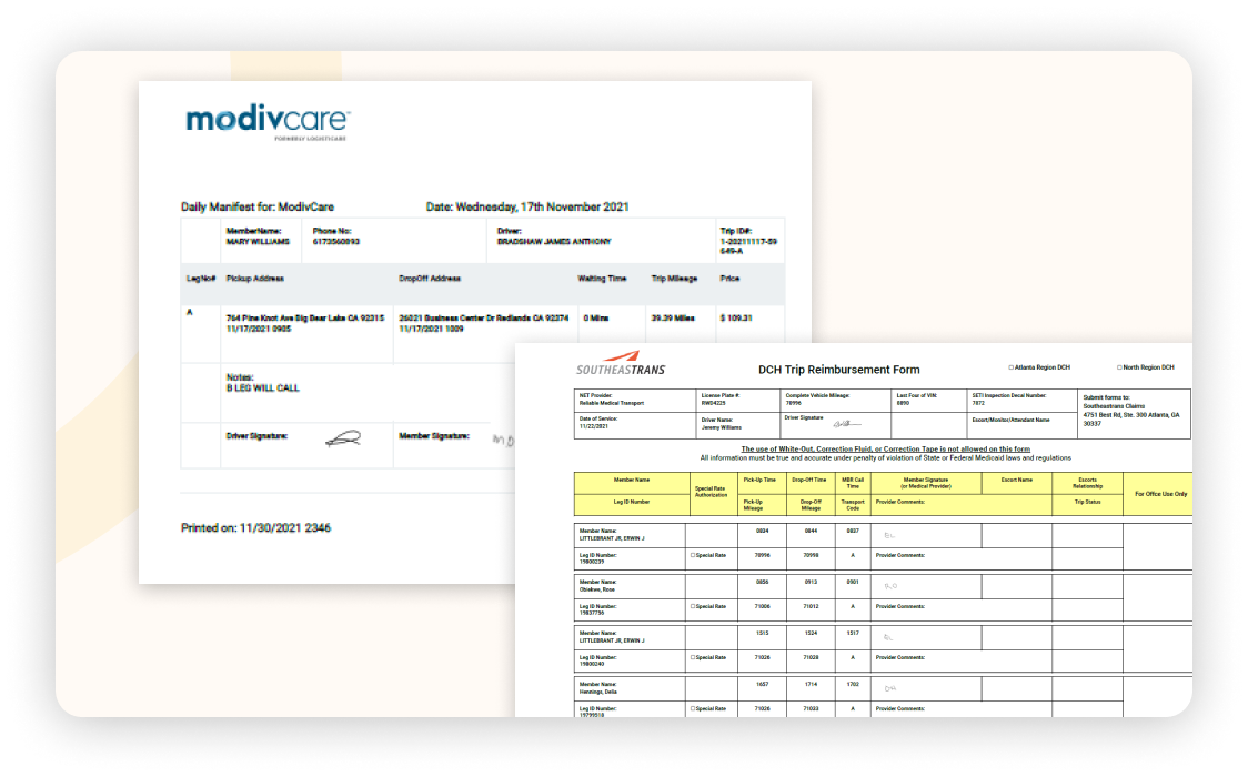 NEMT software automates the billing process, reducing human error, reducing cancellations, and increasing cash flow. We work with a wide range set of payers and brokers. All invoicing forms, including electronic EDI, CMS 1500, and paper invoices, are supported by the NEMT Software.